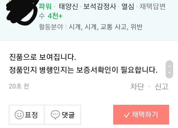 네x버 유명 태양신등급 시계진가품 판별사분이 "진품"으로 판별한 대구호이어 스틸버전