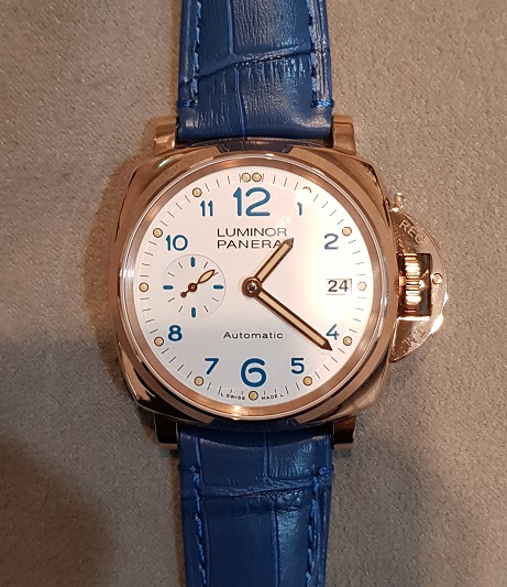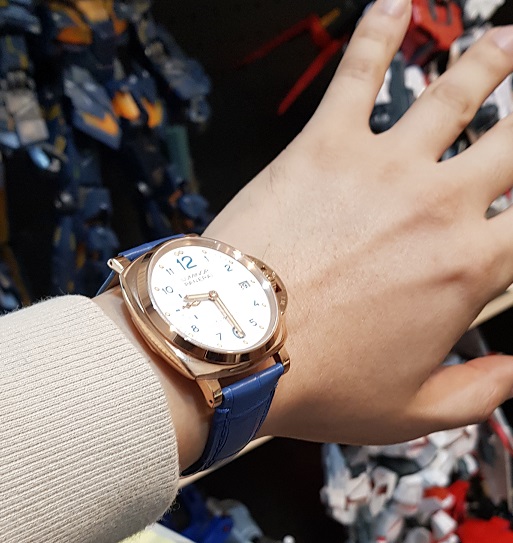 로즈골드 도금, 하얀색 다디얼, 하늘색 인덱스가 조화가 참 좋네요