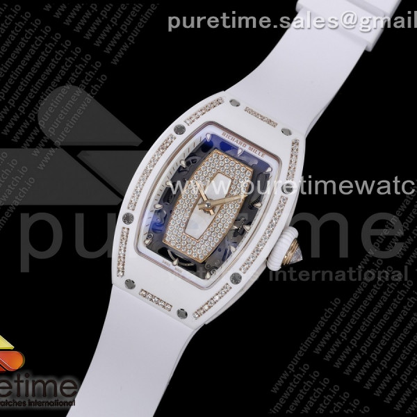 ZF공장 리차드밀 RM07 여성용 Ladies White Ceramic Diamonds Bezel ZF 11 Best Edition White Dial on White Rubber Strap CRMA2 Clone