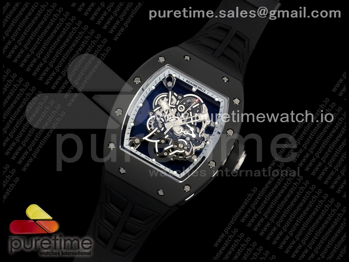 ZF공장 리차드밀 RM055 최신버전 슈퍼클론 무브먼트 RM055 Black Ceramic ZF 11 Best Edition on BlackWhite Inner Bezel on Shark Rubber Strap RMUL2 Super Clone V3
