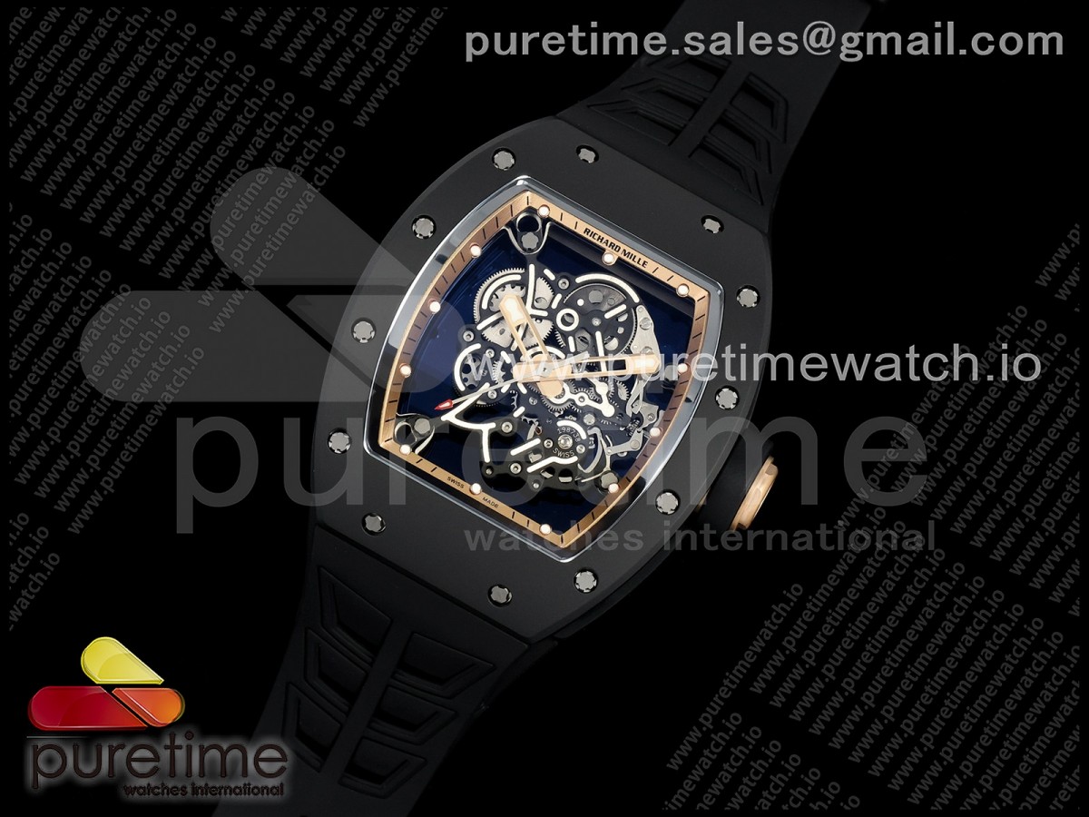 ZF공장 리차드밀 RM055 최신버전 슈퍼클론 무브먼트 RM055 Black Ceramic ZF 11 Best Edition on RG Inner Bezel on Shark Rubber Strap RMUL2 Super Clone V3